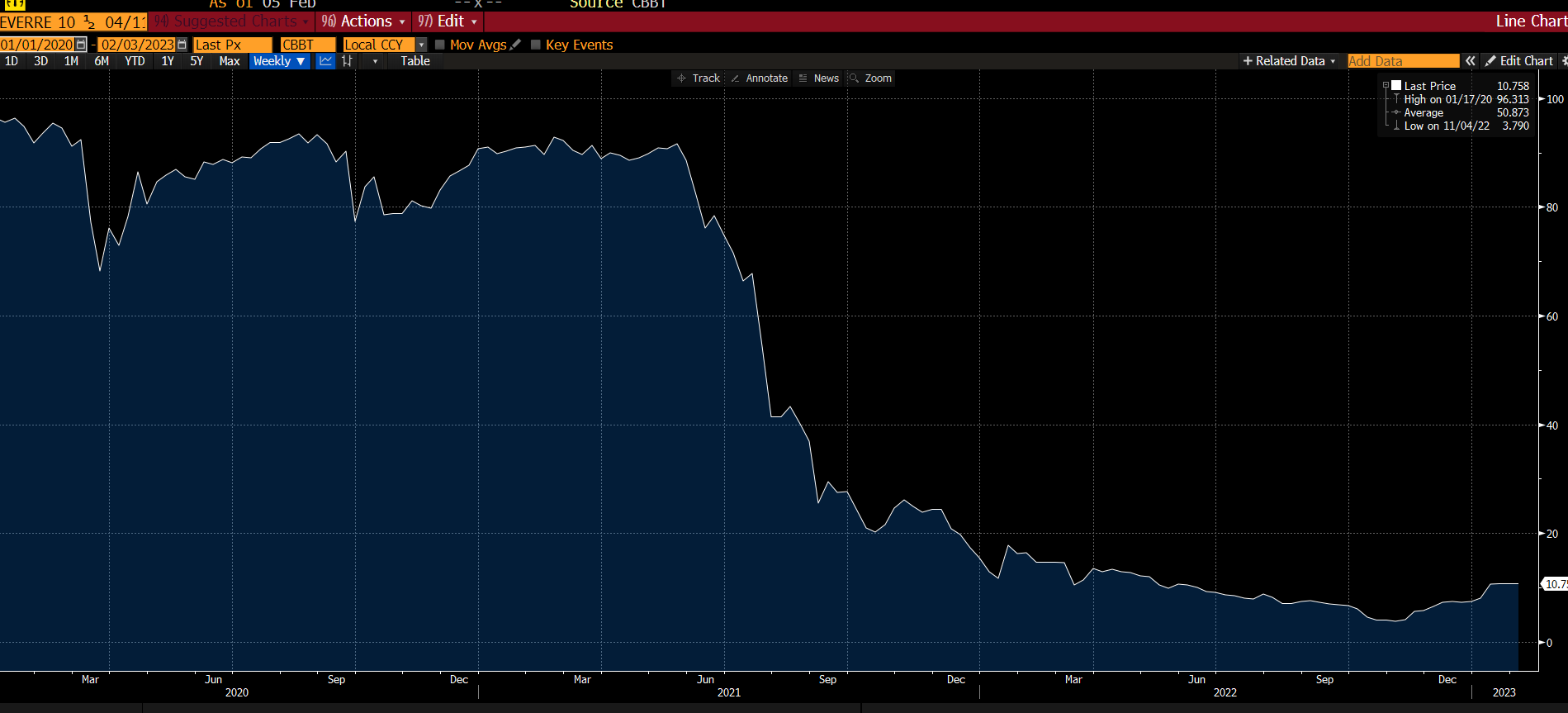 Back in December 2021, Evergrande (the poster child for the China RE bust) had already unravelled and its bonds were trading at ~20c on the dollar