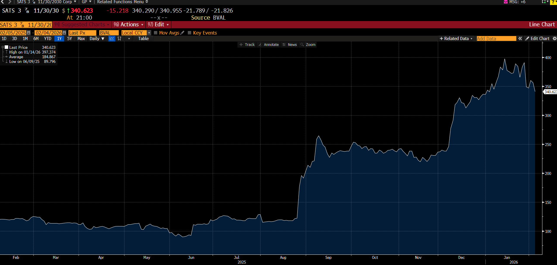 Only 8 months ago, you could buy $SATS 2030 convertible bonds in the low 90s at an implied YTM (yield to maturity) of ~6%